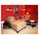 - 2-Pc Quilted beige ultrasuede sectional with loose cushions