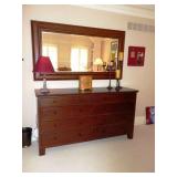 - Modern espresso bedroom suite - Full sleigh bed, single nightstand with one drawer, and 8-drawer dresser with matching mirror