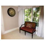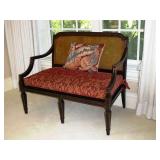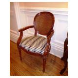 - Pair mahogany armchairs with oval cane backs & upholstered seats