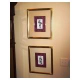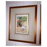 - Pair signed watercolors, “Ladies with Umbrellas”