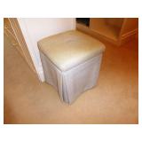 - Hickory tufted caramel ottoman with nail head detail and squat mahogany carved legs