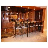 - Six iron bar stools – 4-leaf clover detail in iron chair backs