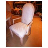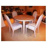 - Whitewashed oak round dining table and 4 upholstered chairs