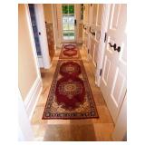 - Green tapestry-style machine made rug 8’x9’6” & matching runner 7’7”x27”