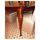 - Century French-style carved mahogany dining set - table with 3 leaves (extends from 72” to 118”), china cabinet & sideboard with 2 drawers