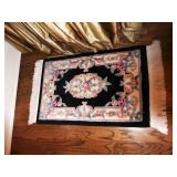 - 9’9”x14’ Hand-knotted black/pink/teal wool floral rug