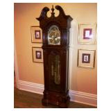 - Sligh mahogany Grandfather clock with moon face & multiple chimes
