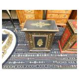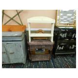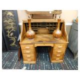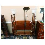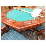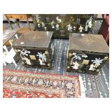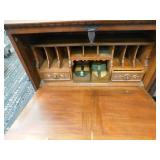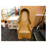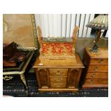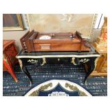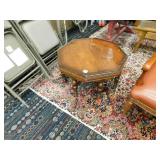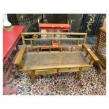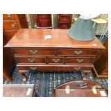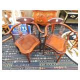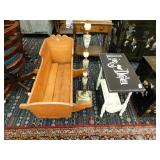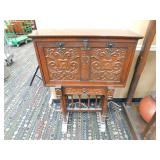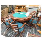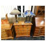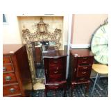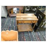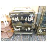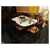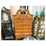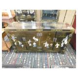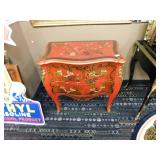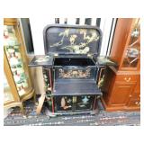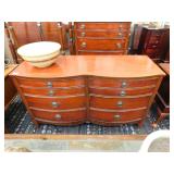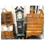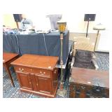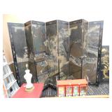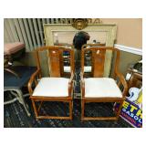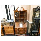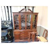A selection of oriental furniture including an extremely impressive oriental room screen, a matching pair of end tables, grandfather clock, curio cabinet, server, 4 door double stacked sideboard, a pair or corner chairs and a bar. There is a beautiful traditional Harden dining room set including a china, server, table and 8 chairs. There is a beautiful mahogany 2 drawer stand, a mahogany coffee table, a beautiful traditional highboy dresser, a mid-century style coffee table, a primitive painted half size corner cabinet, a unique and fantastic kidney bean curio end table, a curio end table, multiple unique painted end tables, a great early trunk with fantastic looking hardware, an oriental style painted serpentine front chest, an oriental bench, a beautiful maple dresser, multiple leather upholstered arm chairs, an absolutely unique hooded arm chair, a mahogany drop front secretary and a mahogany bedroom set, plus much more!
