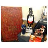 Highlights to include: hundreds of early whiskey jugs from makers such as Royal Salute, Tullamore Dew, Cullamore Dew, Glen Garry, Old Mull, The Kintore, Cruiskeen Lawn, The Graybeard, Allman & Co, Royal Stag Jeroboam, Glen Lake, Ramsays and King’s Ransom. There are some impressive early pieces such as early John Dewer jugs, a Royal Doulton Kingsware Dewar's Bonnie Prince Charlie flask and multiple early Royal Doulton Lambeth Highland Whiskey jugs. It also includes hundreds of liquor pitchers and decanters! There are also unique Ricard Anisette pitchers. Rounding out this section are multiple Royal Doulton The McCallum toby mugs. Next up in this fantastic collection is all of the figural liquor advertising. There are multiple Heineken chalk ware displays, multiple Prince Charlie figural lamps from companies such as Drambuie, many Dewers figural displays, multiple Carstairs seal displays, multiple Early Times Bourbon car and train displays, Hennessey dog displays, a Kirin Beer metal logo, multiple Johnnie Walker figural displays, an Old Crow display, a Cutty Sark ship display, multiple Beefeater figural displays, multiple Old Grandad busts, a Pabst Blue Ribbon bartender display, a Martin’s Scotch display, multiple Schmidt’s figural displays, a Hampton Ale figural display, a fantastic Piels Bert & Harry display, a great Pabst old red car display,  a Pfeiffer’s figural display and so many more there is just not enough time to name them all! Lastly there are multiple early advertising signs including but not limited to multiple early Pabst Blue Ribbon signs, Schaefer, Genesee 12 Horses, Heineken, Neuweller, Schmidt’s, Rheingold, Blatz, Black & White, Coors and more! There are also clocks like the early Calvert model as well as from makers such as Coors, Miller Light and more! Fantastic desk light advertising, and unique light up displays round out this truly impressive collection. This sale will begin in the box-lot section around 1:00pm and move into the main auction room.