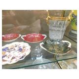 Plus our normal selection of cut-glass including Waterford, Baccarat, selection of quality giftware by Lenox, Ansley, English porcelain, quality cut-to-clear glassware, stemware, Carnival glass, Victorian cranberry glass, Victorian satin glass, and Ruby glassware, Art Glass, plus much more of quality glassware! selection of Asian porcelain, selection of figurines including Lladro figurines, Nao, Royal Doulton, and Bisque, European porcelain, quality porcelain figurines, Royal Doulton figurines, plus other collectibles, Art Pottery, Modern pottery, Asian metal ware, bronze decorative items, vintage books, elegant lighting, decorative lighting, table lamps and chandeliers, Victorian oil lamps, selection of silver-plate, plus much more!