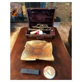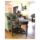 Pictures below *Some picture's may no longer be available Living Room Smith Brothers of Berne Washable Sectional Sofa, Bradington Young Leather Recliner, Glass Top Club Table, Wine Themed Tray Table Set, Wood Side Table, Bugle Themed Floor Lamp, Urn Table Lamp, Metal Magazine Rack, Turned Leg Wood Pedestal, Framed Art, Murano Glass, Cut Crystal Bowl, Tooled Leather Stool, Home Decor and more.