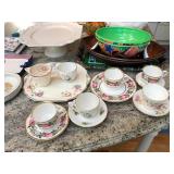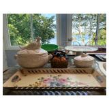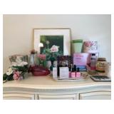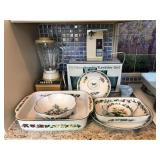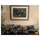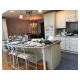 Kitchen Beautiful Clawfoot Dining Table and Chairs, Drexel China Hutch, Portmeirion Botanical Ceramic Cookware, Wilton Armitale, Ceramic Bakeware, Noritake China Set, Silver-plate Bamboo Themed Flatware Set, Teacups and Saucers, Shabby Chic Console, Candles, Wedgwood Jasperware, Bohemian Murano Handpainted Glasses, Godinger Crystal Goblets, Utensils, Linens, and More.