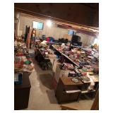 Rockwood 1987 pop up camper Art deco waterfall chest and dresser Frames Stretched canvas Vintage NEW coach purses NEW Sak purses Purses Costume Jewelry- New Sterling silver Jewelry Flatware - plated Children's clothes Tubes of Arcylic and Oil colors Brushes and supplies for painting Lane trunk Men's clothes - some new including Chicago Team sports - XXL Linens Blankets Tunturi excercise bike Store clothing rack Books Religious decorations Hp printer Desks Chest Luggage Stereo Equipment Golf clubs Snoopy phone Mid century wall clock Brass lamp China sets Kitchenware Home decor Owner was a teacher - school supplies and decorations Luau plasticware and decorations Tool boxes Vice tools Schwinn & Trek bikes Office chairs Wooden sled Box fans Vintage rocking horse Coolers Vintage TV trays Games Dartboard Puzzles Games Fake fireplace Albums Frigidaire dehumifer Elgin sewing machine Baking dishes Cake models Mid century laminate table Frig Metal storage cabinet Pre light Christmas Tree White Christmas Tree Military uniforms Toaster oven White Christmas tree Weight benches Patio table Weber kettle grill |
