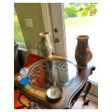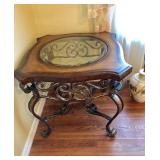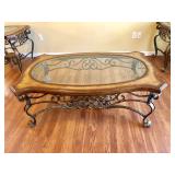 -- Matching Metal Base w/Wood and Glass Top Philippine Coffee Table and 2 End Tables (Coffee Table 35W 56L) (End Tables 29W 29L)