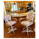 -- 2 "Reflections" Metal Swivel Bar Stools w/back, arms, foot rail (Seat height 25-1/2)