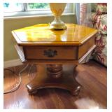 -- Matching Ethan Allen Hexagonal Wood Coffee Table and 2 End Tables (Coffee Table 37W 43L 16H) (End Tables 25W 29L 20H)