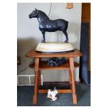 Furniture: Mission Style King Size Bed Frame, Chest of Drawers, Dresser, and Nightstand, Mission Style China Cabinet and Small Table by American Signature. Three NIB Mission Antique Walnut Coffee Table by Atlantic Furniture. Select Comfort Sleep Number Eastern King Foundation Modular Base will be sold separately. Contemporary Bin Pull Media Console - large flat screen TV table/stand, Maple Paddle-Arm three seat sofa, two paddle-arm chairs, maple side tables, maple dresser, maple trunk/blanket chest, antique dresser, stands, kitchen step stool, wicker set Entertainment: Samsung 40” and 46” TVs, BOSE Wave music system w/ remote, two Toshiba DVD VHS players, radios, lots of DVDs, VHS and CD’s. Unique: Dog Mushing Sled, Ross Butler Horse Sculpture for Dawes Black Horse, cast iron 1940’s HUDSON’S SOAP CO. cast iron advertising dog bowl water dish store display Pictures: Many framed Maxfield Parrish - Prince Codadad, Daybreak, Morning Spring, The Enchanted Prince, Stars, The Free Library of Philadelphia Moonlight Night: Winter Decorative: Many pairs of snow shoes and old wooden skis, many styles of picture frames, Kitchen: Bedding: New Sleep Number Blanket and Mattress Pad, New King size sheets and bedspread, and pillows Other: Jewelry, scarves, LL Bean Bags and plastic hangers, Christmas |