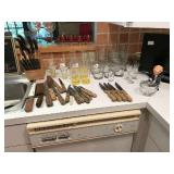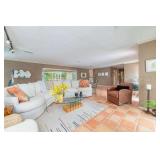 EVERYTHING IS VERY NICE PLEASE PARK ONLY ON ONE SIDE OF THE ROAD King & queen beds, Alain Silberstein watches & others, patio items, art, sectional sofa, rattan swivel chair, Century leather chair, stacking tables, entry table, glass top dinette set, painted dining set & 2 chests, bar stools, desk, 2 pairs of night stands, sofa bed, carved bird, area rugs, La-Z-Boy recliner, wicker dresser, standing mirror, rockers, Samsung TV, pottery, 2 bikes, wagon, George Foreman grill, men's clothes size L-XL, books, garage items, linens & full kitchen. |