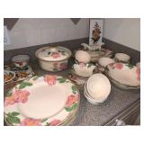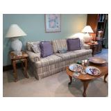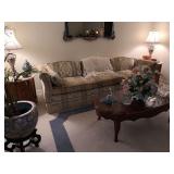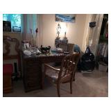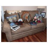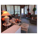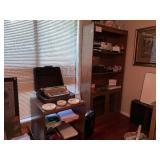 Full house! Matching Thomasville Lighted China hutch Nice collection of Arthur Court, some Franciscan Desert Rose, Crystal and Glassware 40” Samsung Smart TV Nice Brown Sleeper Sofa Desks, Bookshelves, Typewriter, Office Supplies - some train related items as owner worked for CSX. Crosley record player, Fisher vintage record player with stereo Story & Clark Piano and sheet music