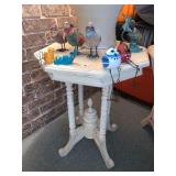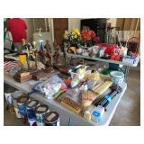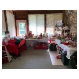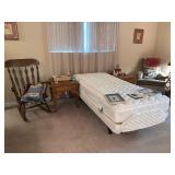 Twin Posture Pedic Adjustable bed with remote Lamps, pictures, smalls- including collection of clowns A lot of Christmas decor, halloween decor, Some crafts White sewing machine, cabinet and notions Collection of barware- decanters, glasses, corks, flasks, etc Adorable drop leaf kitchen table with 2 chairs. Living room furniture, end tables, coffee table and 2 blanket chests. Black garage refrigerator/freezer Coleman garage storage cabinets, electric chainsaw, electric edger, couple of bird baths, patio bench |