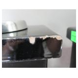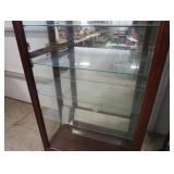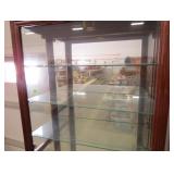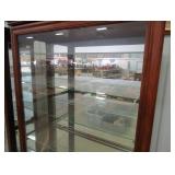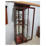 Lighted curio cabinet with 2 way sliding front access door, locking with key