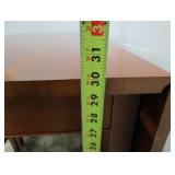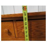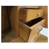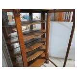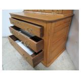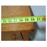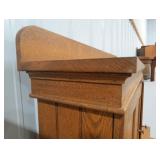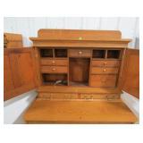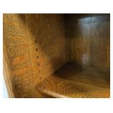 Oak plantation desk with interior drawers and pigeon holes, 2 piece