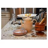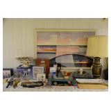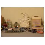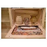 A great assortment of home decor and furniture, ranging from a stunning black marble pedestal table to a cream fainting couch, southwest pottery wedding vases to an owl cookie jar… there’s something to delight everyone at this sale.