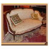 Furniture: Colonial Revival Mahogany Corner Cupboard, 3pc Louis XV style Salon Set, Louis XV style Canapé Settee