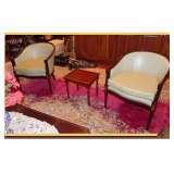 2 Door Bookcase with Reeded Edge Top, Pair of Regency style Barrel-back Armchairs, Chesterfield Leather Sofa,