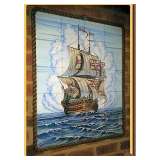 Paintings, Maps & Prints: c. 1890 British School Oil on Canvas, Handpainted Maritime Tile Mural, Portugal