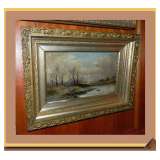 c. 1900 Continental School, Oil on Canvas, Drinking Friar - c. 1875 Oil on Board, American School, Evening Glow