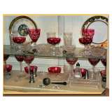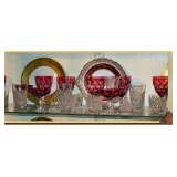 Vestal Gold China Plates, Several Pieces of Rose Medallion, Collection of Bohemian Cranberry Cut to Clear