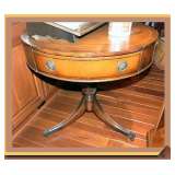 Blanket Chests, Regency style Drum Table, Bookstand with 4 Shelves, Mid Century Bernhardt Teak with Brass Mounts