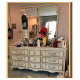 Dresser with Mirror, Hollywood Regency Louis XV style King Size Bed, Hollywood Regency Louis XV style Dresser
