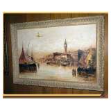c. 1920 British School, Oil on Canvas, Clipper Ships at Sea - c. 1900 Oil on Canvas Neapolitan School, View of