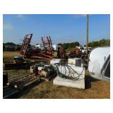 SEVERAL FUEL TANKS/ HONDA POWERED GENERATORS AND PUMPS 2 HUGE STORAGE TANKS- SEE PICS STORAGE TANKS/POLY 7FT ROTO TILLER VARIOUS 5-6 FT SHREDDERS AND BLADES (2) JOHN DEERE 510 BALERS SMALL DRAG OFFSET DISC JOHN DEERE WHEEL DISC 12-14 FT ROOT PLOW FOR TRACTOR TANK AND HOSES 3 POINT 16 BLADE DISC JOHN DEERE LOADER BUCKET