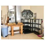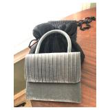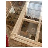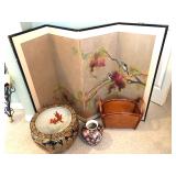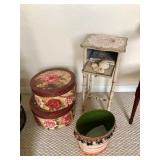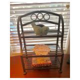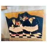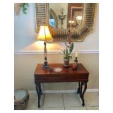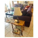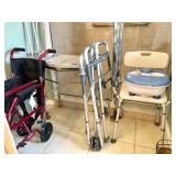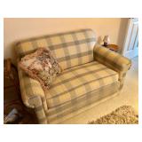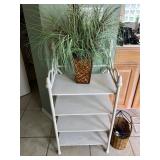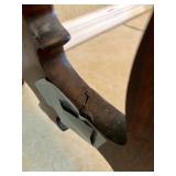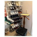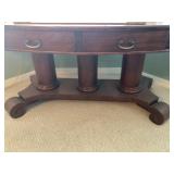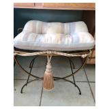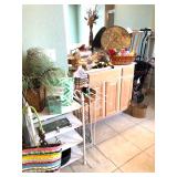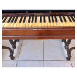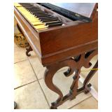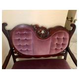 ENTRY #7 -- Antique Victorian Velvet & Carved Wood Parlor Settee w/Front Casters - $175 (36W 23D 37H at back) #4 -- Antique Petite Rosewood Melodeon (Needs Restoration) - $125 (36-1/2W 19D 29H) LIVING ROOM #8 - French Regency-Style Wood & Cane Side Chair - $120 (25W 26D) #9 - Bauhaus Plum 2-Cushion Sofa w/loose Pillow Back - $150 (85W 37D 31H at back) #15 - 4-Tier Etagere Shelf - $225 (20W 18D 61H) DINING ROOM