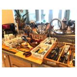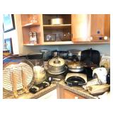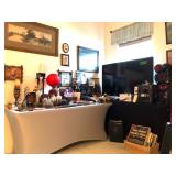#2 - 54-Inch Round Pedestal Dining Table w/5 Chairs - $550 #3 - Unique Arched Lighted Display Cabinet - $475 (50W 20D 86H) #5 - Contemporary Chrome & Glass Bar Cart - $145 KITCHEN