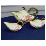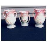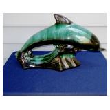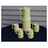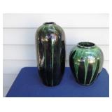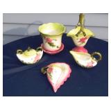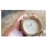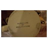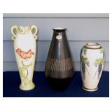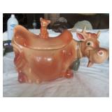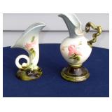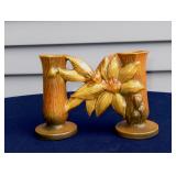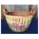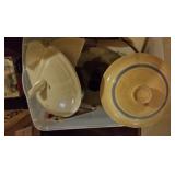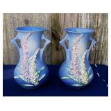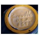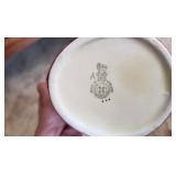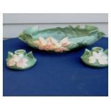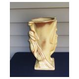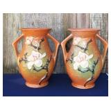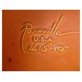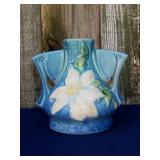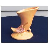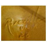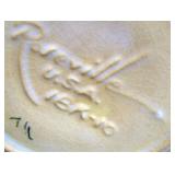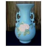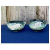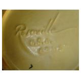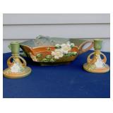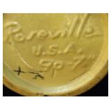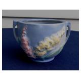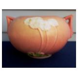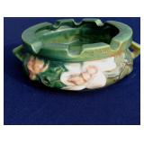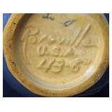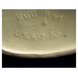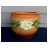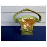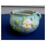 POTTERY: WELLER: “Baldin” Apple Green 7 ½” Planter, Blossom Blue 9 ½” Footed Vase, Flemish 7” Tub, Wild Rose Cornucopia, ROSEVILLE: Ivory Tint 7-piece Water Set- “Rare Set”, 13” Freesia Green A6-6 Creamer & Sugar, Snowberry #128-7 Pink Jardinière, Rozane 4 ½” Mug, Clematis Blue #50 4 ½” Flower Frog, Foxglove Blue # 659-3 Jardinière, Foxglove Blue #43-6 Footed Vases (Pair of Two), Magnolia Brown #90-7 Footed Vases (Pair of Two), Bushberry Brown #415-10 Console Bowl, Snowberry #1-BK-7 Basket in Green, Snowberry Blue BK-10 Basket, Primerose #284-4 Pink Jardinière w/orig foil label, Gardenia #601-6 Jardinière in Brown, Gardenia Brown 8” #683-8 Handled Vase, Magnolia Green #28-8 Ashtray, Magnolia Brown #1198 Pair Candle Holders, Magnolia Brown #194-5 Double Bud Vase, Clematis Green Console Set, White Rose Blue Console Set, White Rose #653-3 Bowl, White Rose Brown Console Set, HULL: Magnolia Matte 11” Vase, Magnolia Matte #11 6 ½” Vase, WildflowerW-3 5 ½ Vase, Wildflower #7 8 ½” Vase, Woodland Tea Set, Large Grouping of Hull “Woodland”, OTHER: Brush Cat & Cow Cookie Jar, Burley Winter Brown 5” Handled Mug, Peters & Reed “Zane Ware” Large Planter with Yellow Flowers Background 12”-High, 14”-Wide, 9” Base, (5) Modernistic Art Pottery Pcs (inc HTF 1957 Upsald Ekeby Pottery of Sweden Vase); Bybee Pottery of Kentucky 6” Blue Vase, 10” Frankoma Pottery Footed Nude Vase, (3) Mid-Size & (2) Large Peters & Reed Vases