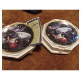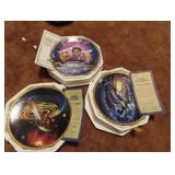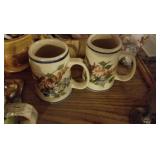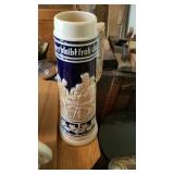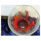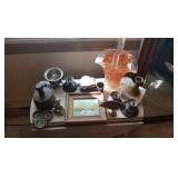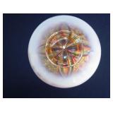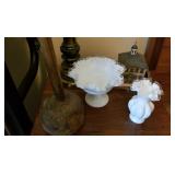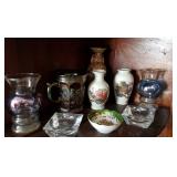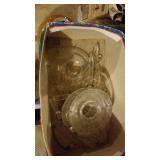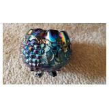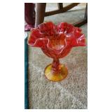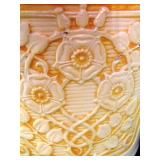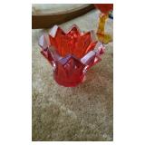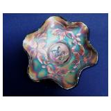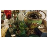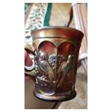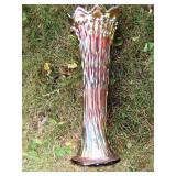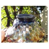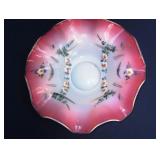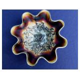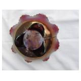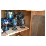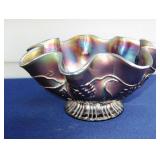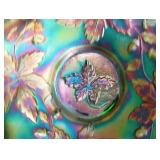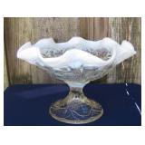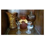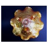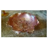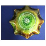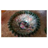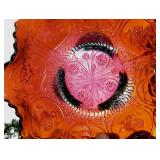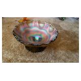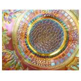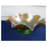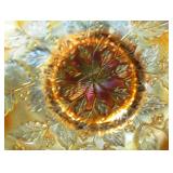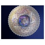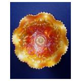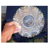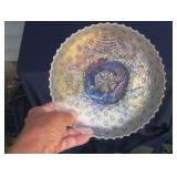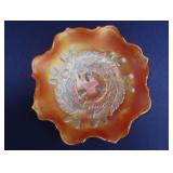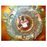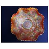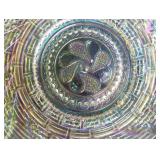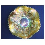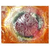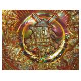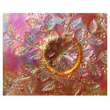 GLASS: Heisey #338-32” High Pulled Vase (Hard to Find), Heisey Priscilla #351 Large Pitcher, Early Steins, CARNIVAL & MORE: Lundberg Studios Heart & Lace 3” Footed Bowl (Very Rare); Millersburg Rays & Ribbons Green 3-1 Edge Bowl; DUGAN: Round Up Frosty White 9” Plate, Apple Blossom Twigs Frosty White 9” ICS Bowl, Four Flowers Peach Opalescent 6” Plate; NORTHWOOD: Star of David & Bows Black Amethyst Nut Bowl-Rare, Wishbone Dark Marigold 8 ½” Footed Ruffled Bowl, Fruits & Flowers Green 7” Ruffled Bowl, Leaf & Beads Green Dome Footed Ruffled Bowl; FENTON: Dragon & Lotus Lavender 8 ½’ Ruffled Bowl-(Hard to Find), Waterlily White Opalescent Large Footed Compote 7 ½” Tall, Orange Tree Marigold 8” Ruffled Bowl, April Showers Purple 11” Vase, Drapery Ice Green Opalescent Candle Holders, Holly Electric Marigold 9” Plate, Holly” Dark Marigold 10” Carnival Glass Plate, Holly Ice Cream Shape 8” Bowl (Satin Marigold-HTF), Acorn Marigold 7 ½” Ruffled Bowl, Autumn Acorn Green 8” Ruffled Bowl; OTHER: Mount Washington Cranberry Opalescent Hobnail 6" Pitcher, Fenton Inverted Coin Dot Marigold Pitcher, Imperial Windmill Variant Marigold 8” Round Deep Bowl, Imperial Premium Marigold 8 ½” Candle Holders, Pairpoint “Puffy” Glass Square Shape for Table Lamp (As Is), Cambridge Mandarin 10” Footed Wide Mouth Pillow Vase; Full set of Cambridge Glass “Martha” # 3600 pattern inc: dinner, lunch, salad, bread & butter plates, cups & saucers, compotes, bowls, ice bucket, muddler, divided server, butter pats, corn servers, cream, sugar, candle holders; Hazel Atlas h.p. Water Set.