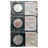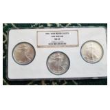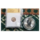 COINS & CURRENCY: Nice selection of Coins from a single local family: 2003 $5 Gold American Eagle Proof, 2015 $5 Gold American Eagle, 1876 US Trade Silver Dollar, Morgan Silver Dollars, Peace Dollars, American Silver Eagles, Half Dollars, Quarters, 1ozt Silver Rounds & Bars, 1946-2011 Roosevelt Dime Collection, 1938-1965 Jefferson Nickel Collection, Proof & Mint Sets, etc!