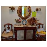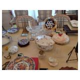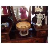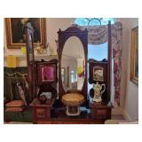 Other collectibles to include Four piece Bosson Heads. Large Lalique Bowl, Multiple pieces of hand painted porcelains. Four piece 19th century Fish Plates. Rare hand painted porcelain lamp Ivory (two piece) teeth. Wedgewood, Lladro, Roseville. Miniature Remington. Judaic, old Coke Bottles w Crate. Smith Corona Manual Type writer. Circa 1930’s 40’s rare advertising. Art Deco heavy bronze pot. FINE FURNISHINGS TO INCLUDE” Wood inlay 19th century two door chest. Mid-century Modern framed mirror and chest. Six piece hand carved dining room chairs. Marble w gilt top mahogany 19th century side table. Oak Farm Table. Four piece Art Deco inlay bedroom set. Three Chandeliers – solid brass and multi – crystal.