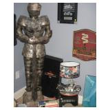Norman B20 guitar with case. Music stands. Bose 802 Series 2000 speaker system. Fender super Reverb amp. Microphone stands. Curtains. 2 Ludwick 12in Tom drums. Metal 4-foot Knight with sword. Lots of pictures. Decorative world globe with copper colored metal stand. Two twin beds. Nightstand. Lamps. Mirrors. Decorative items. Sofa table. Office chair. TV stand. Rugs. Queen-size wood bed with two nightstands and dresser with mirror. Linens. Elvis collector plates. Easy Rider collector plates. Harley-Davidson Christmas ornaments. Fender Bassman 100 amp. Bakers Rack. Wood round table with 6 chairs. Kitchenware. Glassware. Decorative items. Wood dining room table with six chairs. Rugs. Sofa. Loveseat. Coffee table. End table. Accent tables. Corner curio cabinet green. Handmade drums. 4-piece wicker Brown patio set. Char-Broil Classic gas grill in fair condition. Patio slate top table with 8 chairs. Planters. Bird houses. Bird bath. Wood king size bedroom set with two nightstands dresser with mirror and Chester drawers. Large curio cabinet with three glass shelves. Teapot collection. |
