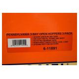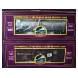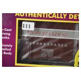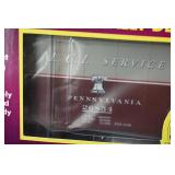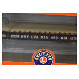 Item Description 1. Lionel Pennsylvania Heavyweight 4 Pack 6-25518 - Combo 5163, Coach 7033 Trimount, Sleeper Lake Merrit and Observation 7530 Williamsport - New In Box 2. Lionel Visionline Baldwin Centipede Diesel Locomotive A-A Set - New In Box 3. Railking Train Cars - Gulf Modern Tank Car 30-7059B and PA Crane Car 30-79262 Both New In Box 4. Railking Train Cars - Islay's #1937 40' Modern Reefer Car 30-78017 and PA 3 Dome Tank 30-7319 Both New In Box 5. K Line Die Cast Train Cars - Heinz Baked Beans Wood Sided Reefer and PRR O Scale Die Cast Flat Car w/ Transformer Load 6. MTH Electric Trains Union Carbide 40' Box Car 2 Pack 7. Designer Porcelain Woman's Shirt Planter Signed Cheri 8. Studio Art Pottery Vase w/ Dancing Woman 9. High Gloss Pottery Tile w/ Woman - Marked SSk 10. Artist Signed Valda Cox Studio Art Pottery Lidded Vessel 11. Artist Signed David Hovland Brush Valley Pottery Vase 12. Framed Oil On Board Gentleman w/ Straw Hat Signed Frost 13. Print Entitled Meistersinger Artist Signed In Pencil 45/80 - David Hunter In Walnut Frame 14. Framed - Original Lithograph "Delphina" Signed In Pencil Agnes Tait and Pencil Drawing Cottages In North Wales Signed R. Ironmonger 15. Pig Themed Prints - Harley Hogs & Hog Wash Signed Combs 16. Flip Back Reversible Church Pew 92" Long 17. Antique Corner Cupboard - 1 Piece 42x20x85 18. Large Oak Blanket Box w/ Carving 57x25x30 19. Pantry Open Face Cupboard In Paint 54x13x60 20. Dome Top Trunk w/ Wood Banding, Tin Covered 36x20x26 21. Oak w/ Turned Leg School / Paymaster Desk 28x23x35 22. Covered Tin Dome Top Trunk, Wood Banding - The Feigenbaum Trunk & Bag Co. 30x17x20 23. Porcelain Top Table w/ Pop Up Leaves - Very Clean 40x44x30 Opened 24. Primitive Separator 34x24x20 25. Cherry Drop Leaf Table w/ Drawer 52x38x29 26. Antique Dovetailed Baby Cradle 41x25x19 27. School Desk w/ Cast Iron Base - Haney School Furniture Co. Dated 1888 23x26x32 28. Antique Baker's Table 37x23x30 29. 3 Section Pie Cabinet 17.5x10.5x35 30. Counter Top Drop Front Desk 20x10x17 31. Stencil Decorated Plank Seat Chair in Paint 32. School Desk w/ Cast Iron Base - Century Automatic 18x21x23 33. Child's Wood Ride On Horse 31x13x23 34. Display Amish Buggy 28x14x19 35. Primitive Cabinet 22x6.5x30 36. Paint Decorated Child's Wood Rocking Horse 30x12x24 37. Lionel Legacy Pennsylvania 2-10-4 #6498 Steam Locomotive - New In Box 38. K Line Die Cast 4-Bay Hopper 6-F : Pack of 3 Containing 2 Cars Each (total 6) New In Shipping Box 39. MTH Die Cast O Scale Freight Cars - Pennsylvania 40' AAR Box Car and Railway Express Agency R50B Express Reefer Car 40. Rail King by MTH Electric Train Cars - Pennsylvania Crane Tender Car and Pittsburgh Plate & Glass 3 Dome Tank Car 41. MTH Die Cast O Scale Freight Cars - DuPont Tank Car and Pennsylvania 40' Reefer Car 42. Primitive Wood Dough Boards 33x17 & 20" Diameter 43. Blue & Gray Stencil Decorated Hamilton & Jones Greensboro Pa Stoneware Crock 44. Blue & Gray Stencil and Freehand Decorated Hamilton & Jones Greensboro Pa Stoneware Crock 45. Handmade Rowe Pottery Works Blue & Gray Decorated Stoneware Water Cooler w/ Separate Base **Repaired Lid 46. Antique Primitive Wood Trencher 47. Vintage GI Joe Figures and Accessories - Dolls Marked 1964 48. Antique Doll Bed 49. Remington Wingmaster Model 870TB T162944V Pump 12 GA. Trap Gun 2 3/4 In Shells, Monti Carlo Stock, Barrel Stamped KZ Remington Arms Co. - Purchased by Owner 1970 50. J.C. Higgins Bolt Action Model 50 Cal. 30-06 Sears Roebuck and Co. 583.98 Action Made In Belgium w/ Original Scope Marked JC Higgins Rifleman Senior 2 1/2X 51. Japanese Wakizashi Sword & Kozuka Dagger, Detailed Tsuba, Original Handle & Scabbard, Return To Family Paper Label Oko Iwataro, Blade Handle Markings Translate To: Katan Japan February 1852 (translated by third party may not be 100% accurate) 52. Hand Made Emperador 6 String Acoustic Guitar w/ Case 53. Framed Fruit Still Life Signed Brandt Landau ??? 54. Oil On Canvas Trees Signed E.Schei ??? 55. Studio Art Pottery Vase 56. 2 Irish-Hosler Art Pottery Vases 57. Art Pottery Fish Signed Jan Hurd and Plaster Wolf's Head Sculpture 58. Studio Art Pottery ARS Teapots & Vessel 59. Studio Art Pottery Signed Powder Jar and Display Piece 60. 3 Pieces Pottery Dishes Signed Quick 61. 5 Pieces Handmade Paper & Cans Framed Modern Art - Bainbridge 62. Framed Art - "Snap Shot" T. Speer 11/50, Harriet Elson "Rockport Shed's" Genuine Whiskey Painting and Other 63. Walnut Copper Lined Smoke Stand w/ Magazine Compartments 64. Black Patent Saratoga Trunk Circa 1870-1875, Calf Binding, 2 inner Trays, Monogramed M.L.C. for Maria Lillian Candler 37x22x26 65. Cast Iron Lawn Jockey on Pedestal Base in Paint 10x13x38 66. Vintage Child's Rocking Horse - Real Hyde 35x14x33 67. Antique Oak Counter Top Old Store Cash Box / Register w/ Clarks ONT Spool Cotton Decal 29x21x12 68. Small Metal Antique Sage 16x13x13 69. Gargoyle Statue - Resin or Composite Material 70. Hanging Lead Glass Lamp 71. Antique Stamper Attached to Single Drawer Box 72. Hammond Multiplex Antique Typewriter In Case 73. Lionel K4 #1361 Legacy Pacific Locomotive - New In Box w/ Shipping Box 74. 2 Pack MTH Electric Trains Koppers #504 Tank Car 75. Lionel "The Red Arrow" Heavyweight Diner Car 6-25639 76. 3 Atlas Steam Era Classics Train Cars - Swift's Wood Reefer, 8,000 Gallon Tank Car and Koppers Tank Car 77. MTH Electric Trains Railway Express Agency 40' Steel Side Reefer Car (damaged box) and Pennsylvania 4 Bay Hopper Car w/ Coal Load 78. Lionel Pennsylvania 18" Aluminum Stationsounds Diner 4507 79. Original Cast Iron Mechanical Black Americana Bank "Bad Accident" In Original Paint 80. New Old Stock Boudoir Doll 81. Harmonicas - Wiener Concert Tremolo Stimmung, M. Honer Old Standby w/ Box and 2 Minis 82. Vintage Ladies Compacts - Girey, Worlds Fair 83. Perfume Bottles, Compacts and Other Vanity Items 84. Powder and Shaving Soap Boxes Including Musical 85. Vintage Razors, Shaving Brushes and Scissors - Valet Auto Strop Razor, Evers