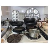 KITCHEN Kitchen Appliances! Elec. Skillet, Cuisinart, Grills, Crockpots, Grills, Coffeemakers Full Pantry and more Cast Iron Cookware and More!, New Meat / Cheese Slicer Vintage Ceramic Jello Molds in 3D. All Four Seasons! Beautiful Set of Rare Haviland & Limoges China made in France Houston Oiler Smoked Glasses, Assortment of Dishes, Platters Heavy Pewter Napkin Holders, Silver / Silver Plate Items Galore!! Rare Vintage Measuring Cups with Bee Handles! Antique Sinclair Scott Apple Peeler