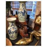 Good Furniture to include Mid-Century Barrel Design Bar, Table and Tub Chairs, Georgian Chest on Chest, Hairy Paw Baltimore Dresser, Flame Mahogany Empire Poster Bed, Ashley Furniture Black Modern Bedroom Suite, NY Duncan Phyfe style Settee, Oak Sideboard, Desk, Etc., Biggs High Chest, Two Cherry 50's Bedroom Suites, Solid Cherry Banquet Table & Chairs, Leather Oversize Day Bed, Students Desks, French Painted Secretary Desk, Two Lawyer's Bookcases, Herman Miller Grandfather Clock, Antique Pine Drysink, Oak Icebox, etc., Sterling Silver includes Stieff Repousse, Two Sets Gold Pens, Three old Fans (Westinghouse, etc.), many scatter and runner Rugs including Sarouk, Oil Paintings and other Art, Military Paper & Items, Collection of Cloissone Vases and Plates, Antique Marble Bust and Urn, Oriental items include Bronze Vases, Figures, etc., Royal Doulton and Lladro Figures, German Steins, old Pharmacy Bottles, selection 1940's WWII Estate Paper and Memorabilia,small Stamp collection including Chinese, Wood Carvings, Jade and more!