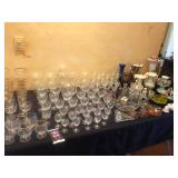 Etched crystal set to include pitcher, champagne, water goblets, wine, sherry