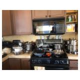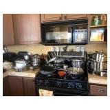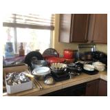 Kitchen stuffed full of appliances, baking dishes, casseroles, you need it for cooking we have it