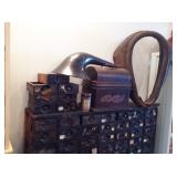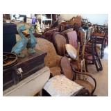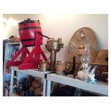 Dealers looking for inventory? Large collection of antique smalls including many vintage hand tools block planes and others, hand drills, clamps, fire ax, levels, etc. dietz lantern, railroad lantern, auto and more. Vintage cranberry scoops, antique license plates, brass ships compass, spotlight, pewter pieces, Edison player, Victor working duck decoy, antique hardware storage cabinets, butter turn, craved sign, 1950's BNC pedal tractor, antique angeles trike, scales, clocks, lamps, cast iron stuff, art books, vintage playboys, framed original art, prints, crockery, vintage trunks and tool boxes, purple bar stools, mission furniture, gateleg table, baskets, vintage cameras, records, beer steins, tons of linens, vintage radios, child's bentwood rocker, upholstered rosewood chairs and others, and much more. |