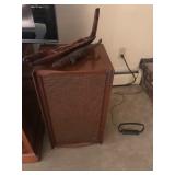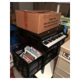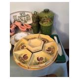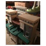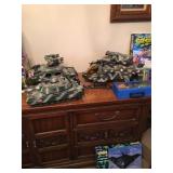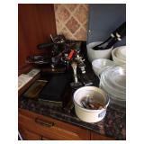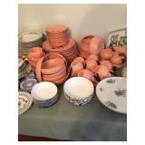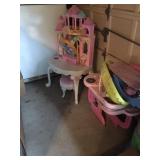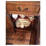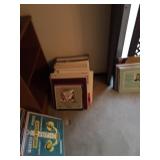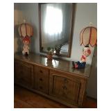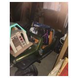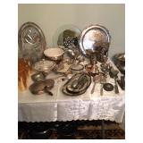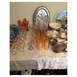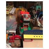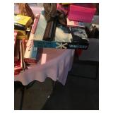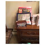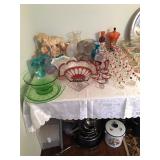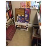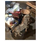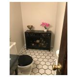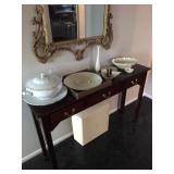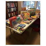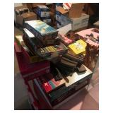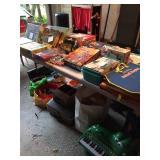 Home offers mahogany dining room table with needlepoint chairs & server, retro sofa, console table, mirrors, end tables, Asian style bedroom set, 50's bedroom set, Asian cabinet, assorted lamps, desks, bookcases, TV's, overloaded with books, records, vintage electronics, barware, trains, toys, outdoor furniture, planters, lots of tools, set of Embassy china, kitware, glassware, bric-a-brac & lots more! |